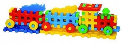 Zestaw pozwala zbudować lokomotywę z wagonikami, w których można przewozić zwierzęta ( w zestawie lew i hipopotam). Klocki są lekkie, a sposób łączenia przyjazny dla dziecka i właśnie dzięki temu dzieci lubią się nimi bawić, zarówno chłopcy jak i dziewczynki.