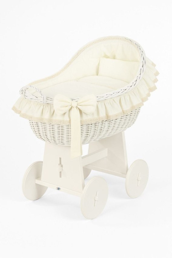 Wiklinowy kosz Mojżesza z budką wiklinową Carina biały + kremowa pościel