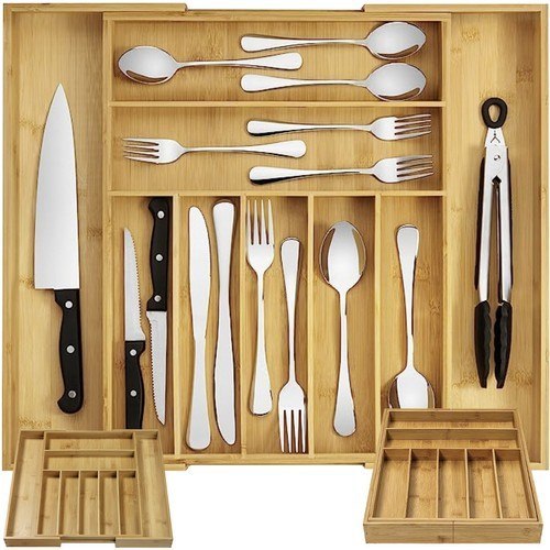 ROZKŁADANY? chcesz mieć od 6 do 8 przegródek w organizerze? Znaleźliśmy dla Ciebie idealne rozwiązanie. Jest to rozsuwany organizer do szuflady. W najmniejszym wydaniu ma 6 przegródek, a po rozsunięciu posiada aż 8.Dzięki temu nie musisz się martwić o miejsce na dodatkowe sztućce takie jak małe widelczyki czy dodatkowe noże.