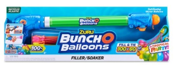 W zestawie Bunch O Balloons znajdziesz pompę-wyrzutnię oraz 100 wodnych balonów do swobodnego rzucania!