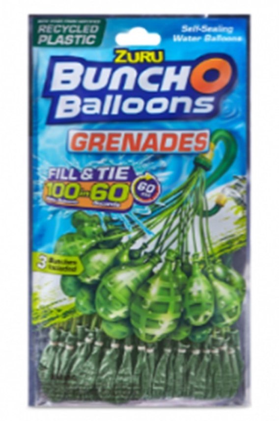 Dzieciaki uwielbiają wakacyjne bitwy na balony z wodą, ale mozolne wypełnianie każdego balonika i ręczne wiązanie potrafią zniechęcić każdego. Żeby nie tracić cennych chwil lata, ZURU oddaje w wasze ręce zestaw Bunch O Balloons Grenades - aż 100 balonów, które napełnisz i zwiążesz w mniej niż 60 sekund!