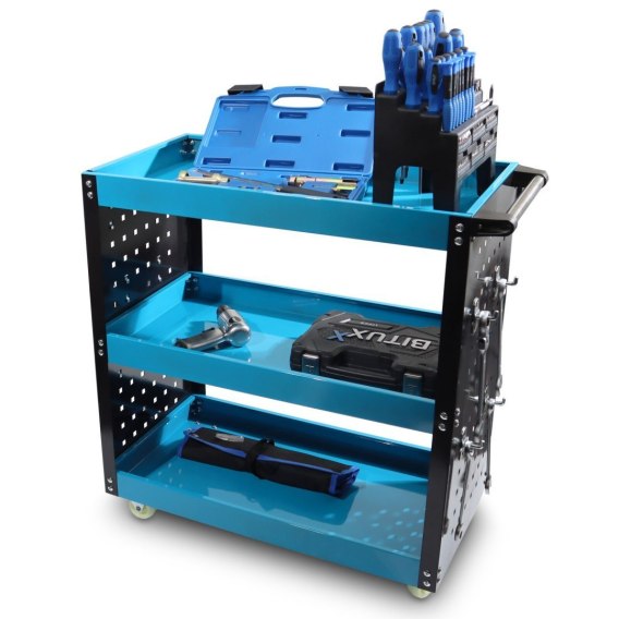 BITUXX przedstawia praktyczny i funkcjonalny wózek warsztatowy, który doskonale sprawdzi się w każdym warsztacie, garażu czy zakładzie przemysłowym. Dzięki trzem przestronnym półkom oraz ściance perforowanej, umożliwia wygodne przechowywanie narzędzi, akcesoriów i innych niezbędnych elementów, zapewniając łatwy dostęp i porządek podczas pracy.
