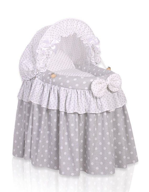 Świetny prezent dla małej dziewczynki, piękny kosz do spania dla lalek, z długą elegancką falbanką.