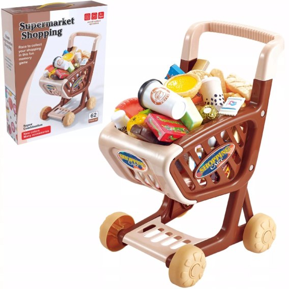 Wózek sklepowy koszyk dla dzieci słodycze ciastka napoje sklep 62 el.