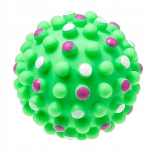 Piłka Z DUŻYMI WYPUSTKAMI, która docelowo jest dedykowana jako zabawka dla psa. Ale zamówiliśmy ją do naszego sklepu i okazało się, że ona jest na tyle fajna i przede wszystkim bezpieczna, że spokojnie może być zabawką dla dziecka. Tym bardziej, że producent jest polski, posiada wszelkie certyfikaty bezpiecze stwa.