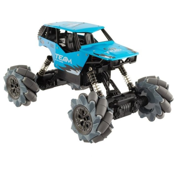 Samochód zdalnie sterowany za pomocą ruchów dłonią to innowacyjny sposób sterowania. Pojazd posiada 4 niezależne silniki, które napędzą koła, a sprężynowe zawieszenie stabilizuje tor jazdy. Specjalna konstrukcja stożkowych opon zwiększa możliwości starowania samochodem. Karoseria wykonana jest z aluminium i pomalowana jest w piękne wzory.
