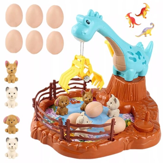 Zabawka zręcznościowa obrotowa dinozaur z jajkami gra dla dzieci manualna