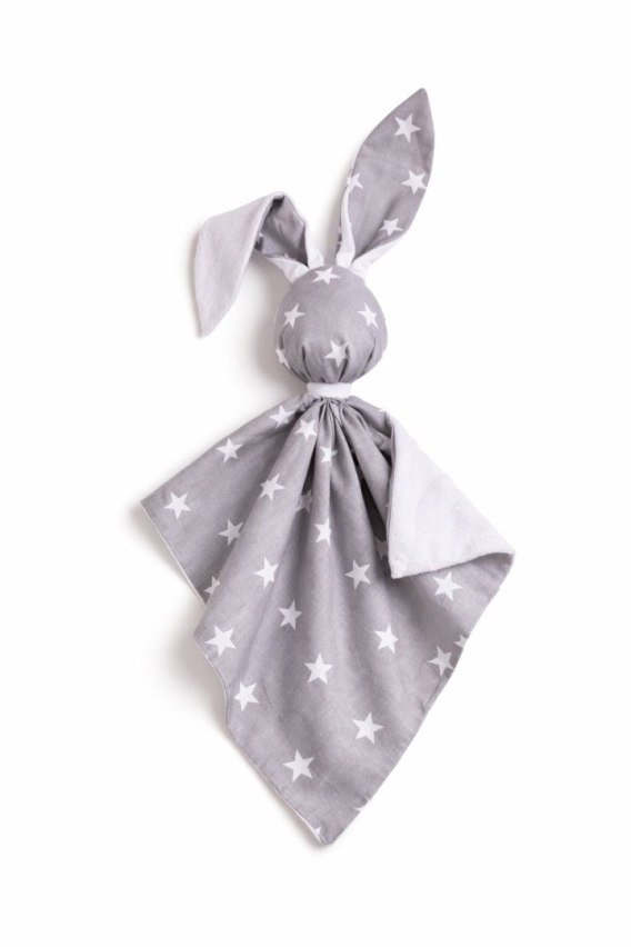 Zając przytulanka DOUDOU dwustronna bawełna i minky - Gwiazdki szare - biały