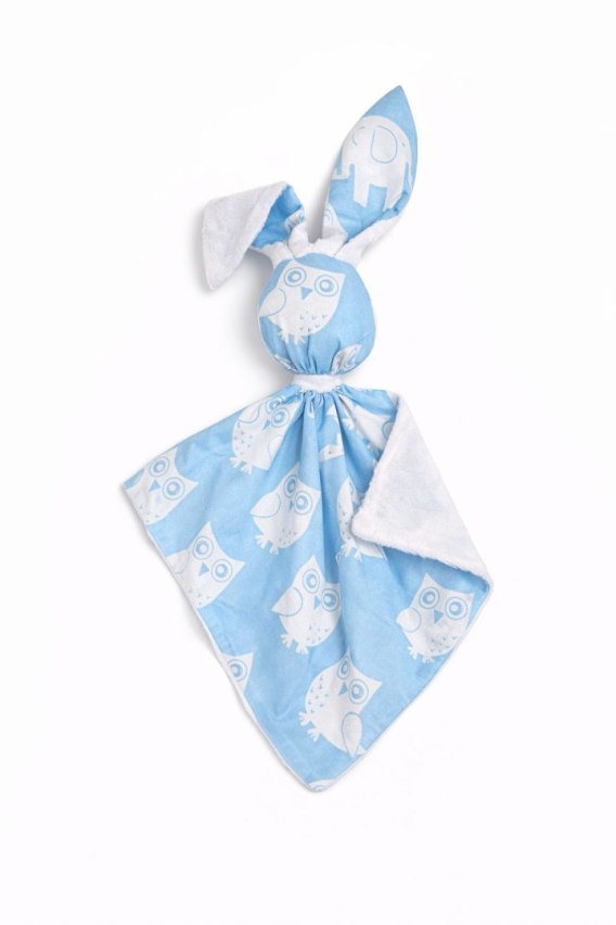 Zając przytulanka DOUDOU dwustronna bawełna i minky - Sowy niebieskie - biały