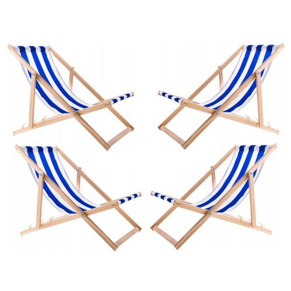 Zestaw zawiera- Zestaw 4 leżaków, niebieskie pasy, złożone Woodok