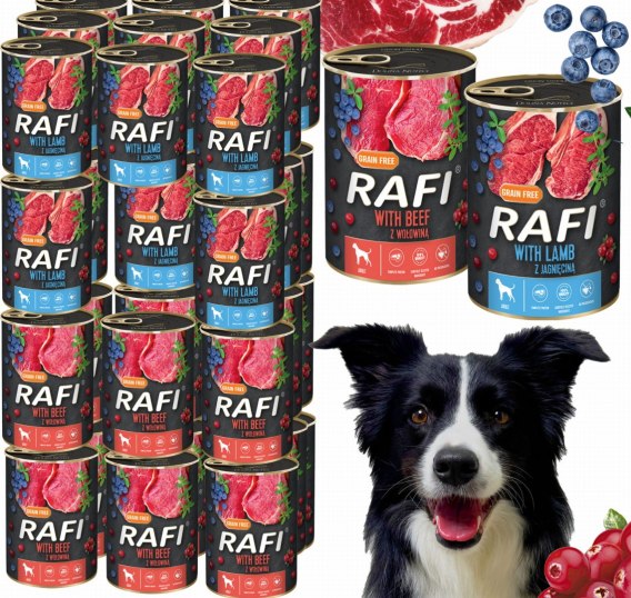 Zestaw 48x400g Karma Mokra Dla Psów RAFI MIX Smaków (Jagnięcina, Wołowina)