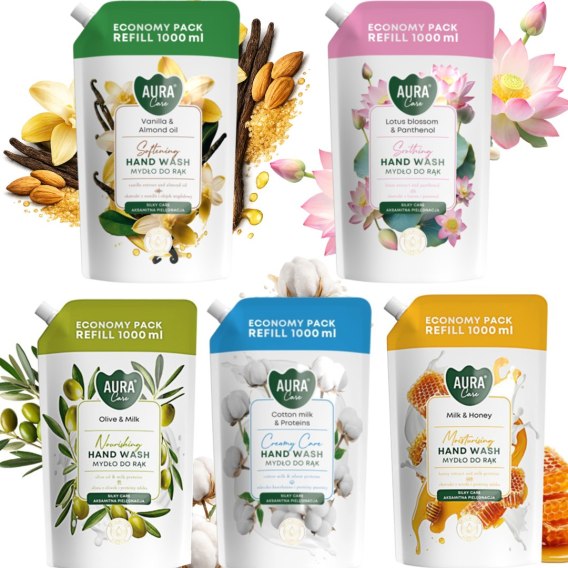 Zestaw 5x1000 ml AURA Care Mydło Do Rąk Uzupełniające MIX