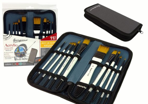 Zestaw Artysty W Piórniku Pędzle Akrylowe 10 Sztuk