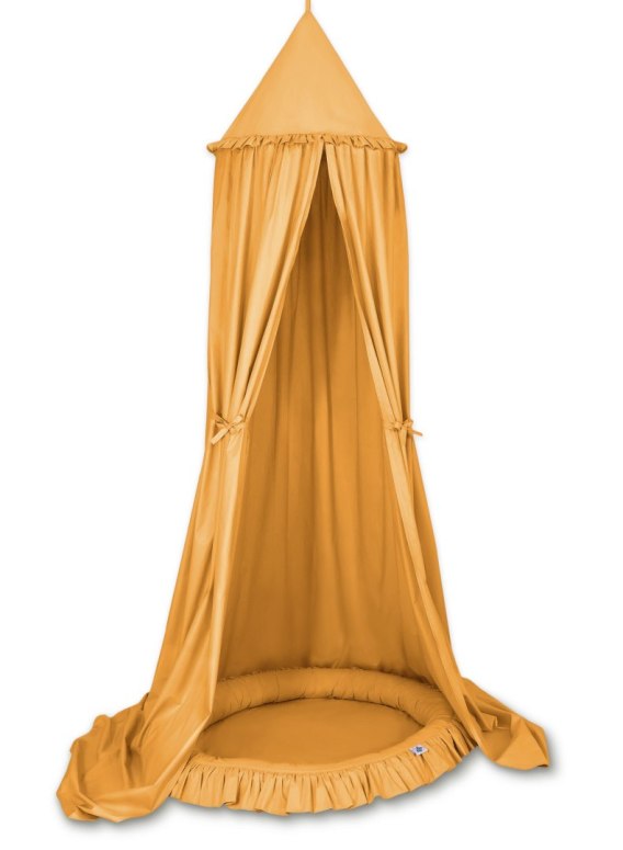 Zestaw: baldachim wiszący do pokoju dziecięcego bawełniany i gniazdko z falbanką - musztardowy