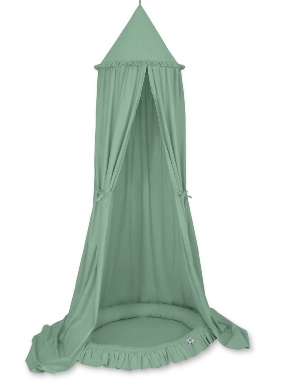 Zestaw: baldachim wiszący do pokoju dziecięcego bawełniany i gniazdko z falbanką - szałwia