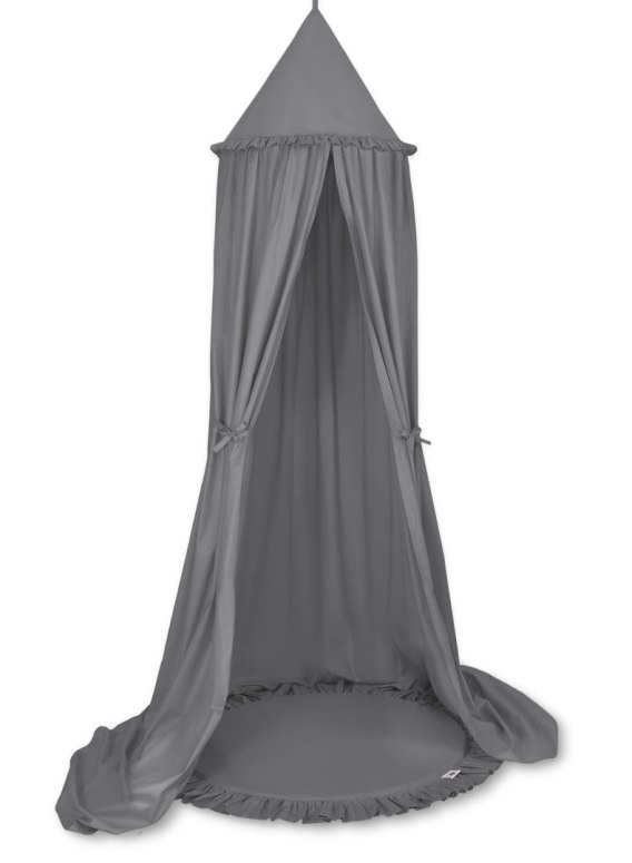 Zestaw: baldachim wiszący do pokoju dziecięcego bawełniany i mata z falbanką - antracyt