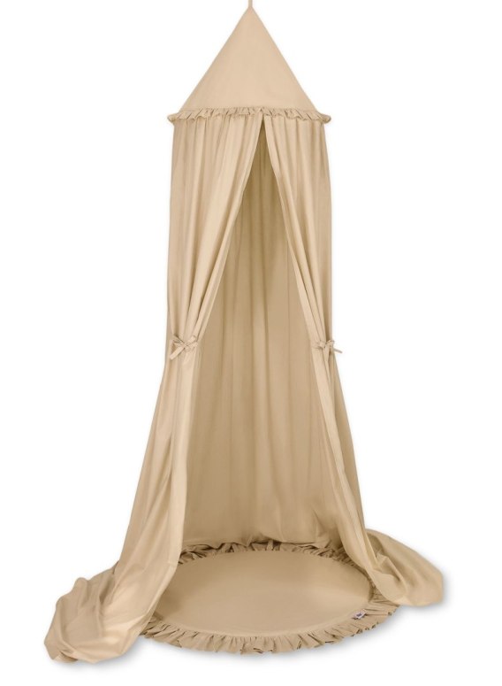 Zestaw: baldachim wiszący do pokoju dziecięcego bawełniany i mata z falbanką - beżowy