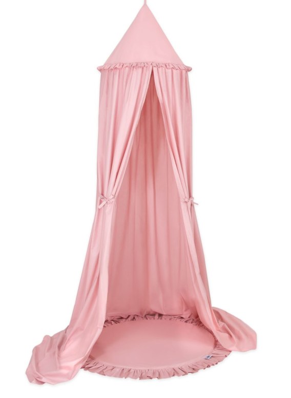 Zestaw: baldachim wiszący do pokoju dziecięcego bawełniany i mata z falbanką - brudny róż