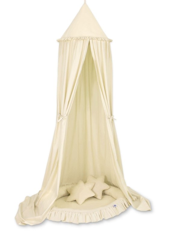 Zestaw: baldachim wiszący do pokoju dziecięcego, gniazdko z falbanką, poduszki - kremowy