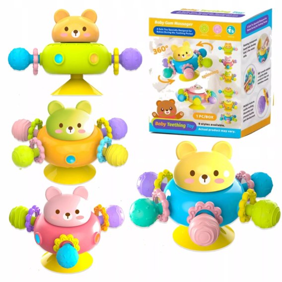 ✅ 4 kolorowe wirujące grzechotki - każda kształcie misia kolorowymi ramionami