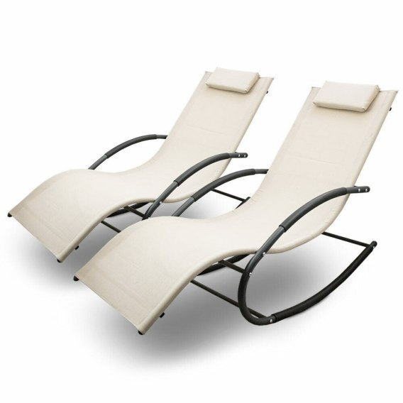 Zestaw leżaków ogrodowych 2 szt bujaki leżanki na taras beżowe