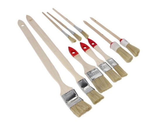Zestaw 10 uniwersalnych pędzli to niezbędny komplet dla każdego, kto planuje prace remontowe lub renowacyjne w domu, warsztacie, czy ogrodzie