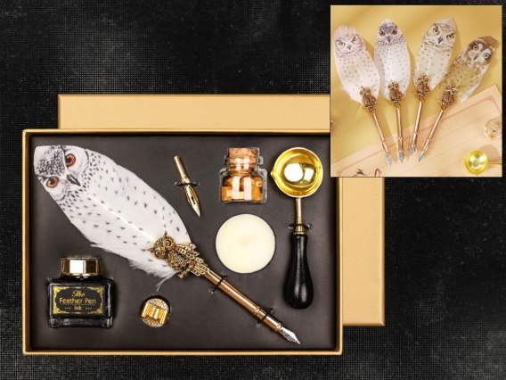 Zestaw piśmienniczy - Pióro ze stalówką, atramentem i zestawem do pieczęci (mix 4 wzorów).