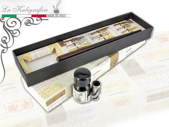Zestaw piśmienniczy - pióro + kpl. stalówek + tusz ze stojakiem na pióro