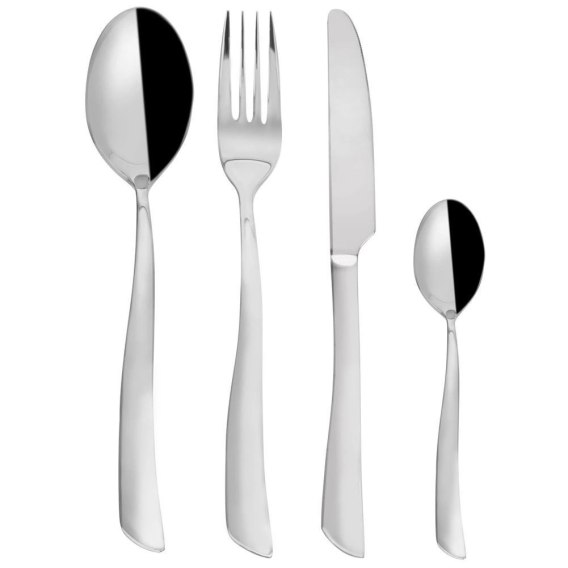Zestaw 24 sztuk sztućców dla 6 osób wo wyjątkowym kształcie. Sztućce są wykonanae ze stali nierdzewnej i nadają się do zmywarki do naczyń.