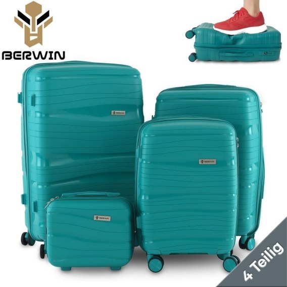 Zestaw walizek BERWIN Torna 4w1 - twarde walizki na kółkach + kosmetyczka Aqua Breeze
