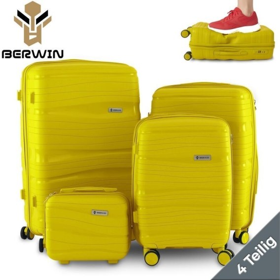 Zestaw walizek BERWIN Torna 4w1 - twarde walizki na kółkach + kosmetyczka Tropic Gelb
